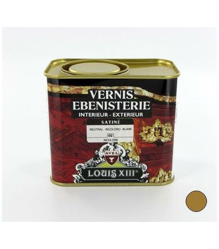 Vernis Ebénisterie LOUIS XIII Satiné, 500 ml, couleur chene clair. Produit de la gamme : entretien bois. Ean : 3324013415345 Vernis monocomposant à base de résines polyuréthanes pour intérieur et extérieur. Facile à appliquer. Sèche rapidement. Très belle finition. ... ...