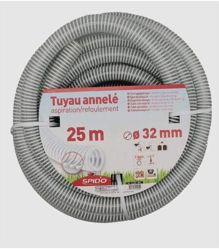 Centrale Brico - spido Tuyau pvc Armé Souple – 7 m – ø 32 mm – Flexible Renforcé à Spirales pour Aspiration et Refoulement