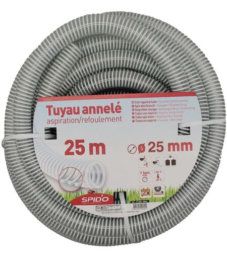 Spido - Tuyau pvc Armé Souple – 25m – ø 25 mm – Flexible Renforcé à Spirales pour Aspiration et Refoulement