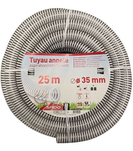 Spido - Tuyau pvc Armé Souple – 25m – ø 35 mm – Flexible Renforcé à Spirales pour Aspiration et Refoulement