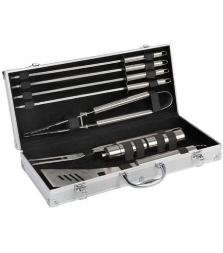 Les + produits Accessoires en inox Jolie valisette en aluminium Élastiques de rangement pour chacun des accessoires Caractéristiques produit Dimensions valisette : L 46 x l 18 x H 8cm Matière valisette : aluminium Valisette comprenant : 4 pics à brochette (L 30,2cm), 1 pince (L 43,5cm), 1 fourchette (L 42,5cm), 1 spatule (L 43cm), 1 salière et 1 poivrier Matière accessoires : inox Garantie : 2 ans Composition et dimensions du produit 1 valisette : L 46 x l 18 x H 8cm Article livré monté Colis 1 : dimensions : L 50 x l 33 x H 11cm Poids brut : 2,5kg/poids net : 2kg. Gestion et Recyclage des déchets ...