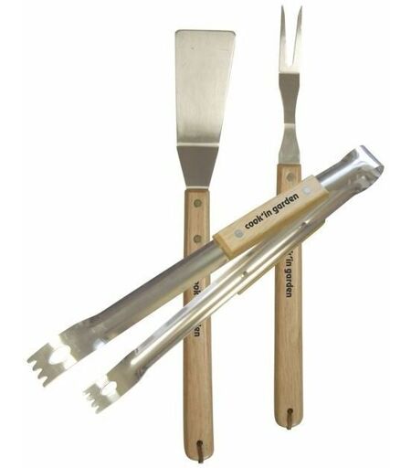 Kit 3 accessoires barbecue : pince + fourchette + spatule inox et bois Cook'in Garden
