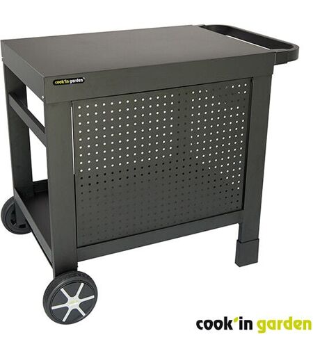 Description générale Le chariot pour plancha Cook'in Garden est idéal pour transporter votre plancha au gaz et tous vos accessoires de cuisine. Il est conçu avec une crédence modulable qui protège du vent et permet de cacher la bonbonne de gaz, tout en offrant un rangement pratique. Ce chariot dispose de deux roues et d'une poignée rabattable pour un rangement facile, rendant la cuisine en extérieur encore plus agréable lors des repas en plein air. Spécifications techniques Dimensions : L 98 × l 65 × H 80 cm Surface de travail : L 98 × l 55 cm Hauteur entre les plateaux : H 61,5 cm Épaisseur des plateaux : 8 cm Roues : Ø 17 cm Structure : acier epoxy Couleurs : noire Poids maximum supporté : 50 kg (tablette haute) / 25 kg (tablette basse) Garantie : 2 ans Compatibilité et accessoires Compatible avec la housse de protection AC002 Fournie avec : 1 jupe ou crédence, 1 poignée, 1 paire de roues renforcées Installation La desserte est clipsable et se monte en 10 minutes sans outils, grâce ...