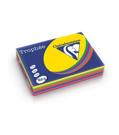 Clairefontaine Papier couleur Trophée - 160 g - A4 - coloris assortis intense : soleil - menthe - cardinal - bleu - fuschia - ramette de 5x50 feuilles