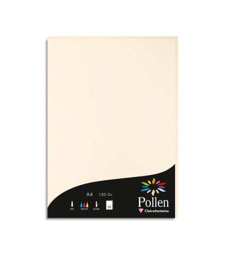 Clairefontaine Papier Pollen ivoire - 120 g - format A4 21 x 29,7 cm - paquet de 50 feuilles