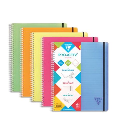 Cahier Clairefontaine Linicolor Proactive spirale PP 160p ligné format 22,5x29,7cm. Coloris assortis Fresh