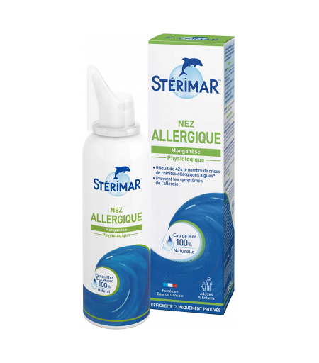 Stérimar met son expérience de la mer et des oligo-éléments au service des nez sensibles. Stérimar Nez Sujet Aux Allergies 50 ml est un dispositif médical, il est recommandé chez le bébé, l’enfant et l’adulte en cas de nez sujet aux allergies. Sa solution d’eau de mer physiologique, enrichie en manganèse est 100% naturelle et sans conservateur aide les nez sensibles à affronter les agressions d’allergènes tels que le pollen, la pollution atmosphérique, les poussières domestique, les poils d’animaux. Il contribue à prévenir les allergies et lave le nez et élimine les allergènes. ...