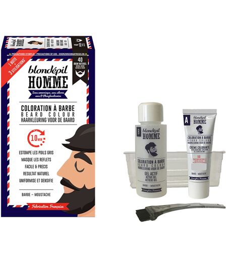 Poils blancs éparses ? Reflets disgracieux ? Barbe peu fournie ? Découvrez la coloration à barbe et moustache pour un poil brun naturel ! Spécialement conçue pour les POILS DE LA BARBE & DE LA MOUSTACHE, la Coloration à Barbe BLONDEPIL Homme masque les poils gris et les reflets blonds ou roux, densifie la barbe pour un aspect uniforme, naturel et équilibré. Ultra facile & rapide à utiliser ! Sa formule douce, haute protection et sans ammoniaque, n’abime pas le poil. Enrichie en Criste Marine et Bois de Santal, elle régénère le poil tout en le colorant. Existe en 3 teintes : Blond naturel, Châtain naturel, Brun naturel. Ce kit existe en 3 colorations différentes : - n°40 Brun naturel ref : 3331849010576 - n°50 Châtin naturel ref : 3331849010590 - n°60 Blond naturel ref : 3331849010583 Une texture gel qui ne coule pas et ne colore pas la peau. Efficace dès 10 minutes ! ...