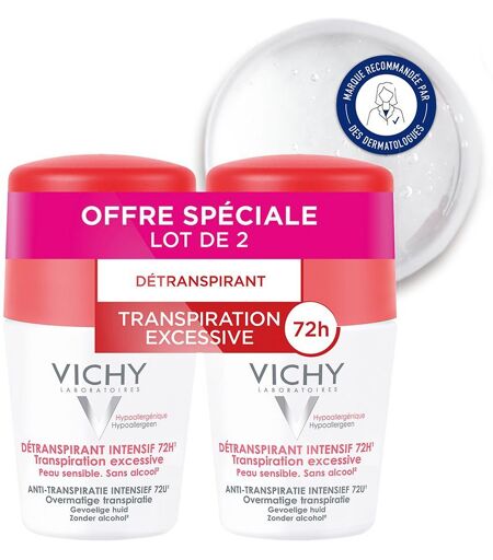 Vichy LOT*2 Détranspirant intensif 72h - Roll-on 50ml Rouleau 2x50 ml