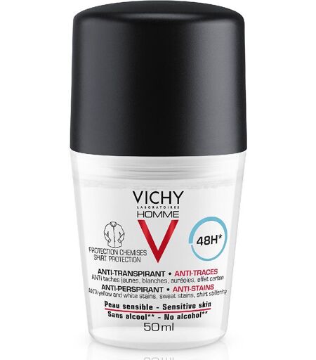 Vichy Homme Déodorant 48H anti-transpirant anti-traces protection chemise 50 ml Rouleau