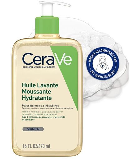 CeraVe Huile Lavante Moussante Hydratante Peaux normales à très sèches tendance atopique 473 ml De Bain
