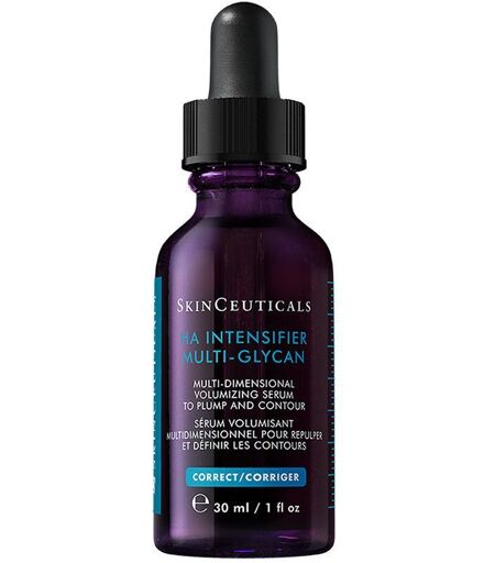Le sérum HA Intensifier de SkinCeuticals est un sérum puissant avec une technologie innovante multi-glycans qui amplifie le volume en repulpant la peau et en redéfinissant les contours du visage. Il contient de l'acide hyaluronique (HA), du Proxylane™ et un complexe d'extraits de plantes pour restaurer la fermeté et lisser la peau.IndicationPour tous les types de peau, particulièrement les peaux montrant des signes de vieillissement, manque de volume et de fermeté.ApplicationAppliquer matin et soir 4 à 6 gouttes sur le visage et le cou avant d’utiliser votre crème hydratante.IngrédientsAqua/Water, Glycerin, Propylene Glycol, Dimethicone, Caprylyl Glycol, Phenoxyethanol, Hydroxypropyl Tetrahydropyrantriol, Sodium Hyaluronate, Glycolic Acid, Proxylane™, Rice Extract, Tocopherol, Adenosine, Sodium Hydroxide, Citric Acid. ...