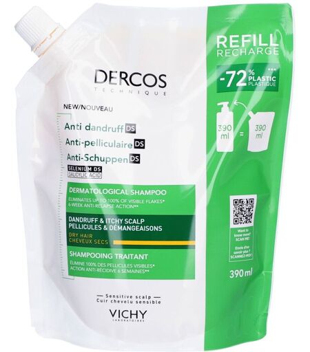 L'OREAL BEAUTE DERMATOLOG VICHY Dercos Shampooing Anti-Pelliculaire Cheveux Secs Eco-Recharge 390 ml