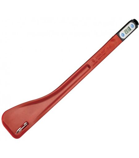 Un ustensile 2 en 1 très pratique pour vos préparations Spatule en matériau Exoglass® résistance décuplée Thermomètre amovible intégré - De -20 à +200°C Précision 0,1°C/ Fiabilité 1°C - Etanche face aux projections Manche coloris rouge résistant à +220°C Ustensile professionnel fonctionnel et ingénieux ...