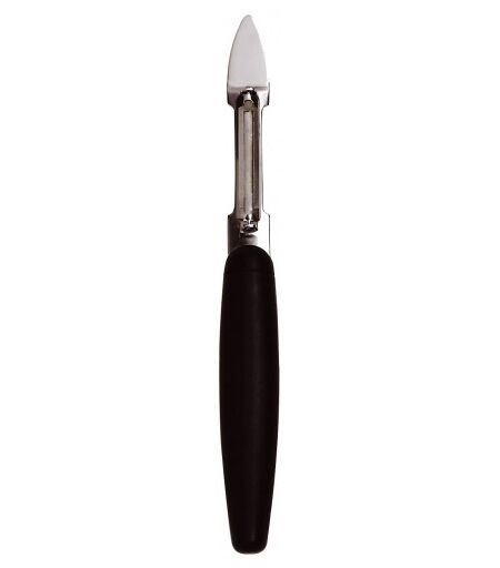 Cet éplucheur Matfer vous fera gagner du temps en cuisine ! Lame pivotante en acier inox : suit le contour du légume ou du fruit Lame fixe tranchant rasoir : pèle vos légumes et fruits sans effort Pointe coupante pour équeuter fruits et légumes Surmoulage jointif de la lame et du manche : hygiène décuplée Nettoyage simplifié grâce au polissage électrolytique Manche PP noir ergonomique: passe au lave-vaisselle Idéal pour les professionnels Fabriqué en France ...