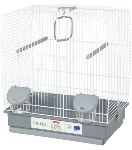 ZOLUX Cage pour oiseaux - Carla - Plastique recyclé - 2 perchoirs - 2 mangeoires - Balançoire