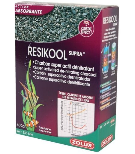 Le charbon Resikool épure, clarifie et absorbe les nitrates de l'eau. Il est idéal pour lutter contre l'eau verte et offre un "Cristal Effect" ! Pour eau douce et eau de mer! ...