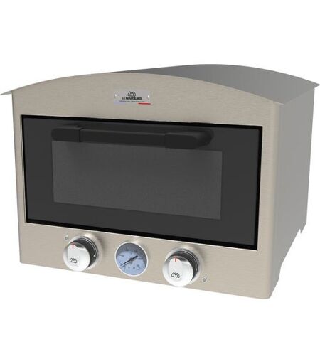 GENERAL Name FOUR A PIZZA SIGNATURE ELECTRIQUE 450 Marque Le Marquier Pays de fabrication France CARACTERISTIQUES : Pierre réfractaire amovible en cordiérite (34,5 x 37,6) Hauteur de la cavité : 14 cm 2 résistances contrôlées séparément (supérieure et inférieure) Montée en température jusquà 450°C 2 boutons de commande avec témoins lumineux de mise en chauffe Thermomètre sur la façade indiquant le température interne du four Châssis en version inox satiné+ et toit en acier peinture époxy coloris noir Porte vitrée avec poignée Eclairage intérieur Nettoyage par pyrolyse Utilisation intérieur/extérieur Fonctionne au courant électrique 220V Garantie 2 ans Norme IPX4 Norme CE Certification Origine France Garantie ULTRA- PERFORMANCE GRANDE SURFACE DE CUISSON Pierre réfractaire amovible en cordiérite de 34,5 x 37,6 cm Porte vitrée et éclairage intérieur pour surveiller la cuisson Sert à cuire pizzas, viandes, pains, gratins... Poids net (produit nu) 25 Largeur (produit nu) 58.2 Profondeur (produit nu) 53.1 Hauteur (produit nu) 39.1 ...