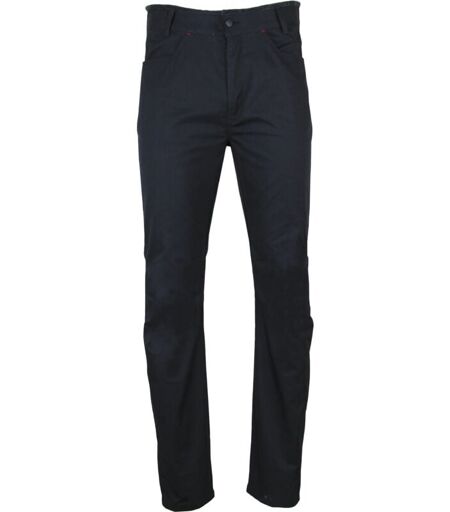 Pantalon avec ceinture élastiquée cotés et doublée en tissu éponge - braguette zippée - ceinture 5 passants - bouton clou métal - 2 poches main - plis genoux en forme - poche téléphone à soufflets arrière cuisse fermée par bande auto agrippante - 2 poches dos passepoilées. 65% polyester 35% coton - 200 gr/m². ...