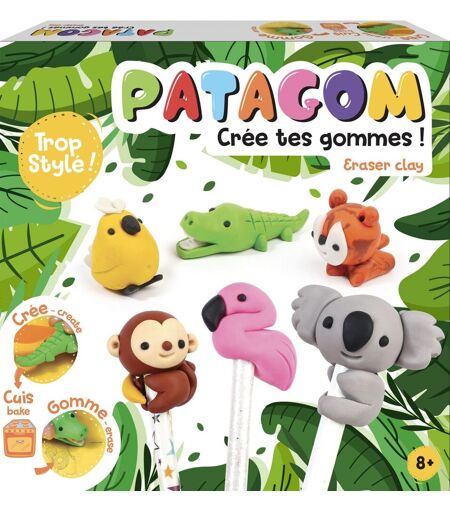 La Patagom est une pâte à modeler conçue pour fabriquer des gommes. Les couleurs sont miscibles entre elles.. Modèle ta pâte à la forme souhaitée, demande à un adulte de la passer au four pendant 15 mn à 120°C, laisse refroidir. Ta gomme est prête !. Le coffret contient : 8 pains de couleur, 3 crayons, 3 outils à modeler ainsi qu'un pas à pas. ...