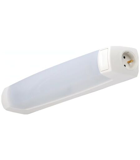 Dimensions : 90 x 64 x 445 mm - Ampoule non incluse - Réglette Eo S19 sans source lumineuse interrupteur prise 2 pôles + terre blanc - classe I - IK07 - IP24 - montage en applique - puissance du système : 75 W - test au fil incandescent : 650 °C ...