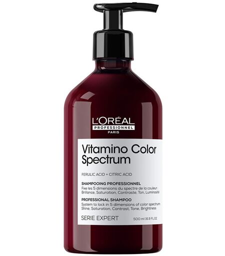 Shampooing sans sulfate VITAMINO COLOR SPECTRUM pour cheveux colorés, fixe la couleur. Shampooing couleur. Type de cheveux: Cheveux colorés. Format: Flacon pompe. Les tendances: Ácido cítrico, Ácido ferúlico ...