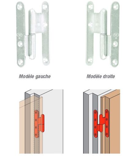 Pour menuiserie bois Coudées à 90° Noeud rond Lames à bouts ronds Bouts:Rond Diamètre de l'axe D:6.9 mm Diamètre du n ud D:12 mm Dimension H1:38 mm Dimensions de la bague:14 x 6,9 x 2 mm Entraxe E1:30 mm Entraxe E2:60 mm Finition:Zingué Hauteur:110 mm Lame:Paumelle à lame Largeur de lames I1:15 mm Largeur totale I:70 x 80 mm Main:Gauche Matière:Acier Matière de la bague:Laiton Pose:A visser Type de n ud:Rond Type de paumelle:Paumelle coudée Usage:Menuiserie bois Épaisseur de lame e:3 mm ...