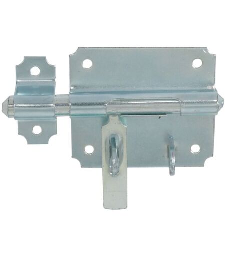 Verrou en acier bichromaté zingué blanc ou noir. - Monté sur platine de fixation. - Oeillet pour condamnation par un cadenas. ...