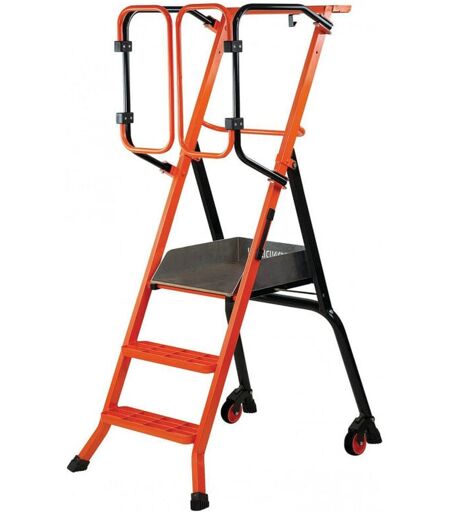 DESCRIPTION GÉNÉRALE Escabeau sécurisé normé PIRL (Plateforme Individuelle Roulante Légère) pour un usage professionnel et sécurisé. Idéal pour les travaux en hauteur dans le BTP, la maintenance industrielle, et l'installation de faux plafonds. Équipé de garde-corps à battants pour une sécurité accrue. SPÉCIFICATIONS TECHNIQUES Dimensions de la plateforme : 50 x 45 cm Marches caillebotis : 450 x 130 mm Charge utile : 150 kg Poids : 14.8 kg Normes : PIRL NF-P93-353, NF-EN 131-7 Garantie : 10 ans Fabrication en France COMPATIBILITÉ ET ACCESSOIRES Équipé d'un bac à outils en métal et d'un crochet pour seau. S'adapte aux obstacles grâce à un tube arrière surélevé. INSTALLATION Facile à déplier et à replier, avec un faible encombrement pour le transport. UTILISATION Conçu pour un travail en hauteur sécurisé, avec des patins antidérapants pour une stabilité optimale. AUTRES INFORMATIONS Roues bombées avec ressorts pour faciliter les déplacements sans avoir à soulever l'escabeau. ...