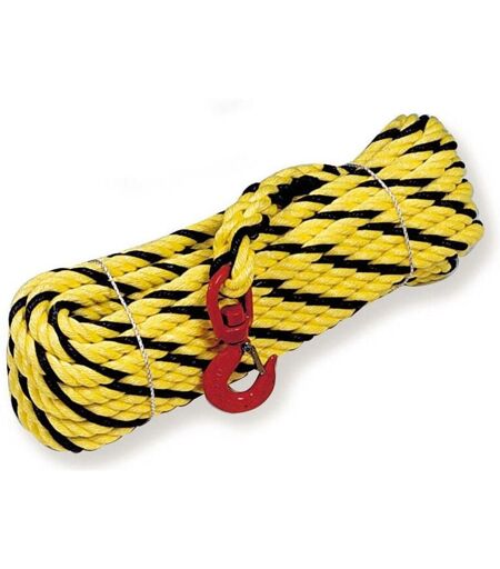 Corde à poulie polypropylène de chez Mondelin jaune/noir Traité anti-UV Avec boucle épissurée et crochet de levage avec linguet de sécurité Longueur : 20 m Norme AFNOR ...
