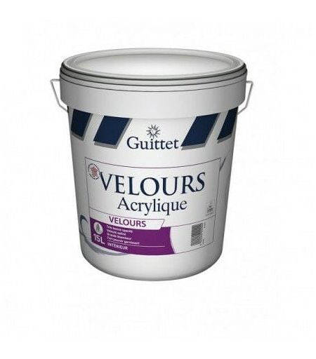 Peinture veloutée aux résines synthétiques en dispersion aqueuse. Informations produit Liant Acrylique. Aspect Poché. Densité 1,4%. Nettoyage Eau ou solvant si le produit a séché. Consommation 9m²/L. Brillance 05% sous 60° angle. Séchage Sec en 2H Recouvrable 6h. Classement AFNOR/NF Famille I, classe 7a2. Phase Aqueuse. Extrait sec 32% en Volume 50% en Poids. Composition COV - 1g/L. ...