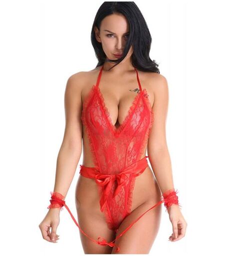 Découvrez le magnifique et délicat Body Dentelle Florale & Menottes Rouge de Paris Hollywood. Ce somptueux body tout en dentelle finement travaillée aux motifs floraux embellira votre silhouette en un instant ! Son décolleté en V mettra en valeur votre poitrine pour une vue des plus excitantes. Sa forme très originale très échancrée laisse vos hanches dénudées et soulignera votre taille à l'aide d'un magnifique ruban en satin rouge. Votre dos tout à découvert ajoute de la sensualité. La coupe string mettra en avant vos sublimes courbes, votre partenaire ne pourra vous résister. En plus de tout ses détails des plus glamours, cette tenue comprend des menottes en dentelle avec le lien en satin rouge, couleur de la passion pour des jeux coquins réussis. Composition : 95% Polyester, 5% Elasthanne Taille Unique. Existe en Rose (https://www.espaceplaisir.fr/paris-hollywood-body-dentelle-florale-menottes-rose.html) & Noir (https://www.espaceplaisir.fr/paris-hollywood-body-dentelle-florale-menottes-noir.html). ...