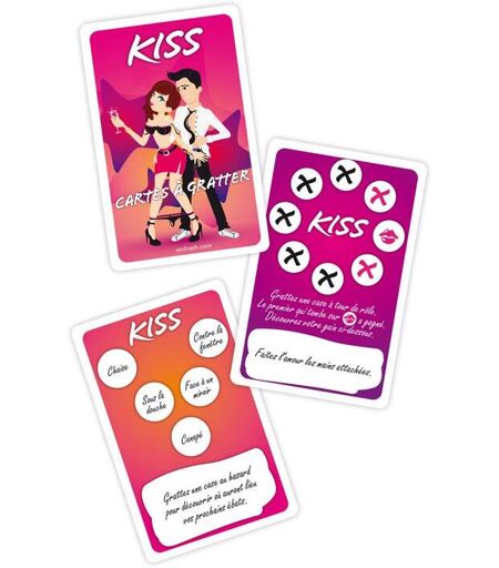 En couple ou entre amis, entre rigolades et désirs, découvrez le Jeu de cartes à gratter Kiss ! C'est le jeu idéal pour faire monter la température et pimenter vos rapports sexuels. Son format carte permet de l'emmener partout avec vous. Le principe est simple, grattez une case au hasard pour découvrir votre futur défi, du plus soft au plus chaud... Serez-vous capable de les relever ? Jusqu'où iront vos limites ? A vous d'en juger... 6 cartes à gratter. ...