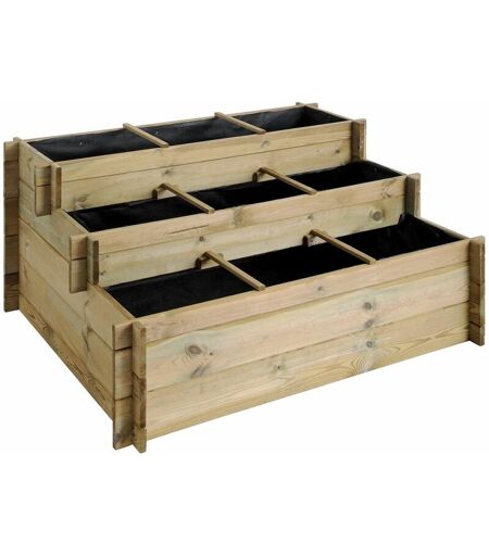 Description générale Le carré potager à 3 étages et 9 cases UP est la solution idéale pour cultiver des aromates, fruits ou légumes sur une surface réduite. Facile à utiliser, il nécessite peu d'entretien grâce à sa culture hors sol. Sa structure en étages vous permet de maximiser l'espace de votre jardin et de planter des légumes de saison comme des courgettes, salades, carottes ou tomates. Le potager est divisé en 9 cases distinctes, offrant une organisation simple de vos plantations. Vous pouvez même personnaliser son aspect en le peignant pour l'intégrer à votre décor extérieur. Spécifications techniques Dimensions hors tout : L 120 x l 100 x H 54 cm Dimensions intérieures : L 106,6 x l 86 cm Capacité : 371 litres Matériau : Pin sylvestre traité autoclave classe 3 Épaisseur des lames : 18 mm Dimension d'un carré : L 34,1 x l 27,6 cm Tasseaux : 10 x 21 mm Poids : env. 29,5 kg Certification : FSC (gestion durable des forêts) Compatibilité et accessoires Livré avec géotextile de ...