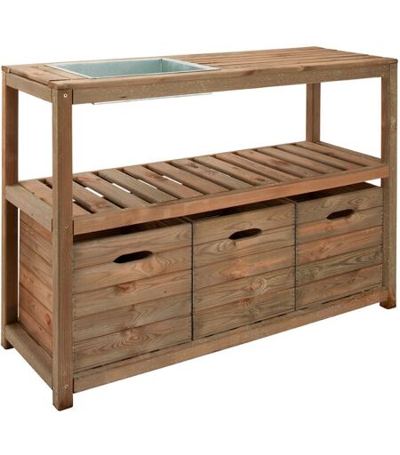 DESCRIPTION GÉNÉRALE La table de jardinage Choko est équipée d'une étagère et de 3 bacs de rangement pour vos pots de fleurs et outils de jardinage. Elle offre un espace de travail fonctionnel tout en étant compact et pratique. SPÉCIFICATIONS TECHNIQUES Dimensions : 129 cm (longueur) x 45 cm (largeur) x 90 cm (hauteur) Étagère incluse 3 bacs de rangement ...