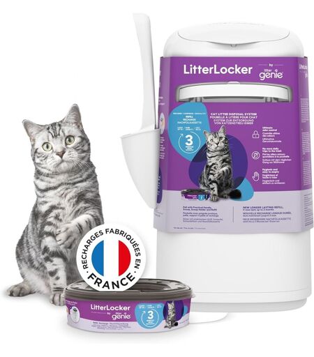 Simple à utiliser en 3 étapes. Ramassez les déjections de votre animal, déposez les dans la poubelle et tirez sur la poignée pour isoler les déchets et les odeurs. Nettoyage sans effort - Fini les allers-retours fréquents à la poubelle extérieure. La poubelle LitterLocker de Litter Genie peut contenir jusqu'à 8 jours de litière (pour un chat) et la recharge dure jusqu'à 3 mois, ce qui vous permet de passer plus de temps à jouer avec votre chat. Contrôle ultime des odeurs - la poignée coulissante offre une conception hermétique. Associées à nos recharges multi-épaisseurs dotées d'une technologie anti-odeurs, elles emprisonnent les odeurs de la litière souillée. Disponible avec une nouvelle recharge longue-durée de 3 mois. ...