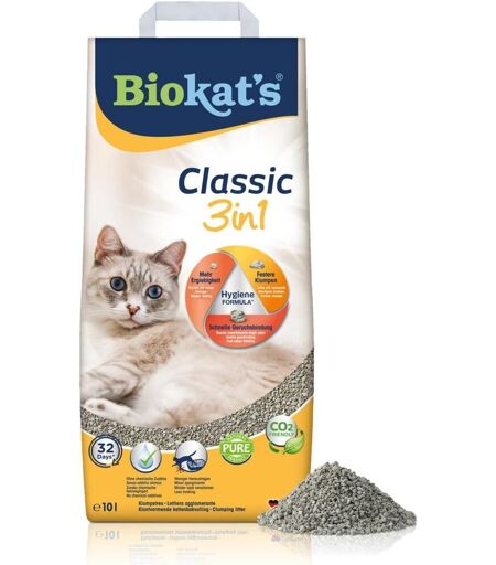 Kalanka-Biokat¿S Classic 3in1 Sans Parfum - Litière Pour Chats Agglomérante Avec Grains De 3 Tailles Différentes - 1 Sac (1 À 10 L)