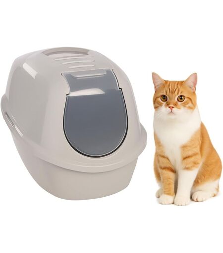 Kalanka-Flamingo Maison De Toilette Trini Taupe - Bac À Litière Fermé - Premium Product - 39x56x39,4 Cm - Nettoyage Facile - Filtre Qui Réduit Les Mauvaises Odeurs - Couvercle Amovible - Très Populai
