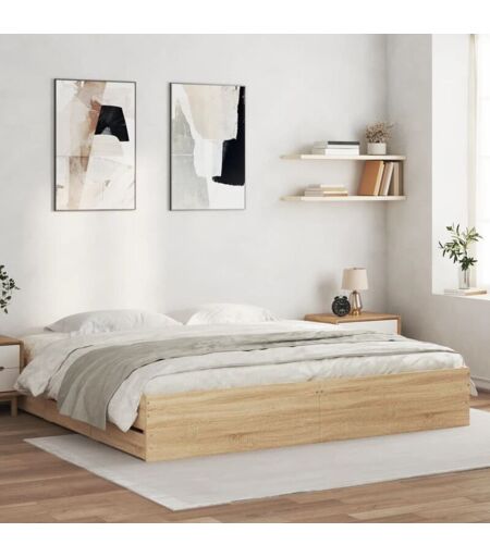 AVIMAC Cadre de lit avec tiroirs sans matelas chêne 160x200 cm