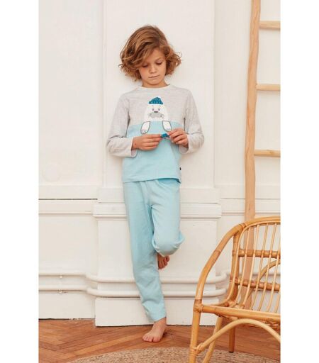 Mon P'tit Dodo Pyjama Long garçon en Coton - Gris Chiné - Bleu Clair - Otarie 8 ans unisex