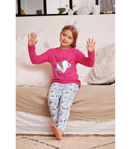 3Suisses : Découvrez le joli Pyjama Leggings fille- Rose à Motifs Argent, Bleu Marine/ Bleu Clair et Motifs Colorés- Étoiles de la marque Mon P'tit Dodo, un ensemble ultra confortable au design original, indispensable pour assurer le confort et le style de votre pendant les saisons fraiches et froides. Caractéristiques : Matière: 100% Coton Type de produit : ensemble pyjama haut à manches longues - pantalon Couleurs : haut fuchsia avec imprimés dans le thème étoile et univers avec inscriptions « Des étoiles plein les yeux » en bleu marine, argenté, blanc et bleu clair ? Pantalon bleu clair avec motifs colorés dans le thème univers col rond - bordures en ourlet Marque: Mon P'tit Dodo Age: Enfant ...