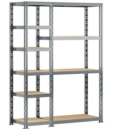 Etagère double charge lourde de 150 cm de long. Elle comprend une étagère de 6 plateaux 50 cm, une étagère établie de 4 plateaux 100 cm et un panneau porte outils. Utilisation double en rangement boites de conserves, bouteilles, chaussures, livres et petits produits et rangement petits et moyens cartons, papier essuie-mains, papier WC. Possibilité d'extension permanente avec toutes les extensions MODULÖ STORAGE Les + du produit Idéal pour utiliser l'espace au mur, même sur de petites surfaces, Très fonctionnel, il permet d'optimiser le rangement des petits et moyens produits et réaliser des travaux de bricolage, Modulable en hauteur grâce à ses plateaux amovibles, Enorme capacité de charge de 2500 kg, répartie jusqu'à 250 kg par plateau, Grande résistance dans les endroits humides, grâce à sa structure en acier protégée par une peinture époxy gris foncé, Montage rapide, sans vis ni boulon grâce à sa conception innovante d'extension des 2 côtés. Caractéristiques techniques Dimensions ...