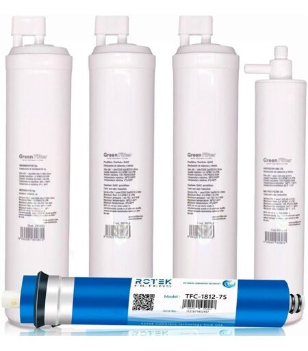 Ionfilter - Kit de 4 filtres de rechange pour osmose inverse, marque Green Filter, type cs, avec post-filtre cs et membrane ro