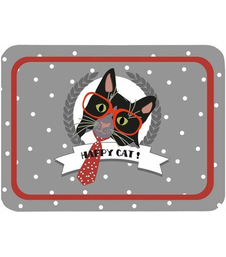 Petit plateau métallique Happy Cat mâle 25 x 36 cm Métal gris et rouge Dim : 25 x 36 cm ...