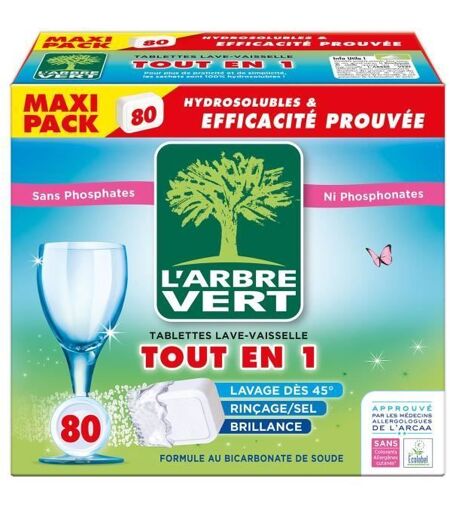 L'ARBRE VERT Tablettes lave-vaisselle Hydrosolubles tout en 1 - 80 doses