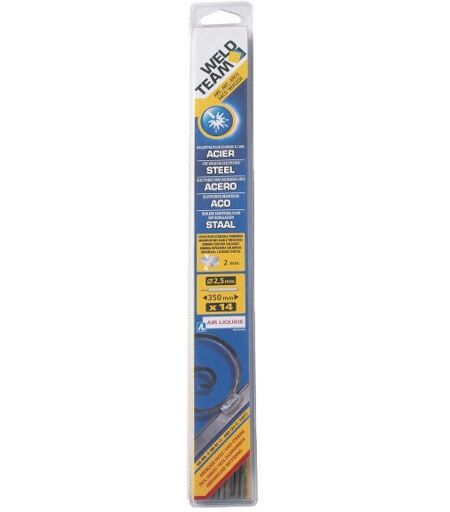 Baguettes pour la soudure à l'arc des aciers courants. Blister de 6 baguettes de soudure diamètre 4,0 pour l'assemblage et la réparation des aciers courants : ferronnerie, menuiserie métallique, serrurerie… Intensité moyenne d'utilisation 150 A. Epaisseur soudable 5,0 à 8,0 mm. Amorçage facile Ne pas respirer les fumées issues du soudage. Travailler dans un lieu aéré. Porter des équipements de protection des yeux, du visage et des mains ...