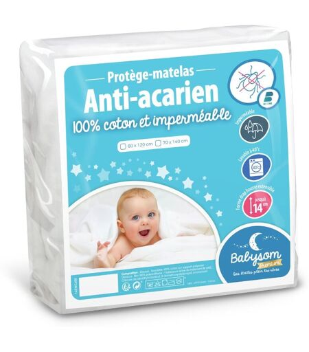 LE + PRODUIT : traité pour contrer les allergènes communs (acariens, bactéries et moisissures) et 100% imperméable. Indispensable allié pour préserver la santé délicate de nos tous petits, ce protège-matelas bénéficie du traitement innovant Bi-Ome®. Véritable barrière contre les acariens, bactéries et moisissures, ce traitement fait de votre protège-matelas un atout précieux pour lutter contre ces désagréments. Idéal au quotidien, il est également le compagnon parfait des virées et escapades avec bébé ! En le glissant dans sa valise vous avez ainsi l'assurance d'une hygiène parfaite de la literie de votre enfant quelles que soient les circonstances (location, lit d'appoint, camping, couchage ancien). Nous avons conçu ce protège-matelas avec des matières premières souples et légères de manière à vous garantir une imperméabilité parfaitement silencieuse ! Super facile d'entretien, le protège matelas ANTI-ACARIEN se lave en machine à 40° et passe sans problème au sèche-linge à cycle ...