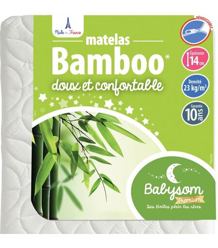 Babysom - Matelas Bébé Bamboo - 70 x 140cm - Epaisseur 14cm - Déhoussable - Sans traitement Chimique - Garantie 10ans