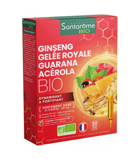 Parapharmacie > Compléments alimentaires > Vitalité - Défenses immunitaires Santarome Bio Ginseng Gelée Royale Guarana Acérola Ampoules - Vitalité - Défenses immunitaires - Pharmacie en ligne LaSante.net x 20