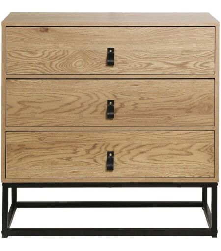 Calicosy - Commode Décor Chêne 3 Tiroirs Piétement Métal - jill